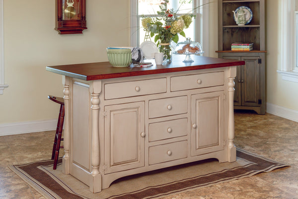 Choose from our Amish made islands beautifully handcrafted with a pine base and maple or oak top, all maple or heirloom quality Amish made Lancaster Legacy all hardwood (oak, brown maple, maple, or cherry). Browse through the options to find the piece(s) that best fits your needs, desires, style, and space.  Islands and seating are sold separately for flexibility and customization.  A large selection of stains and colors are available.  Select from our in store inventory or custom order your dream island.